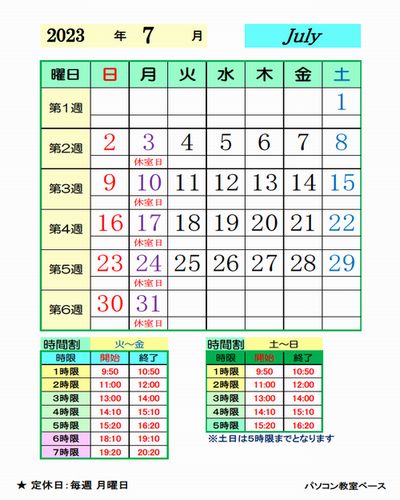 当教室は日祝日はお休みではなく