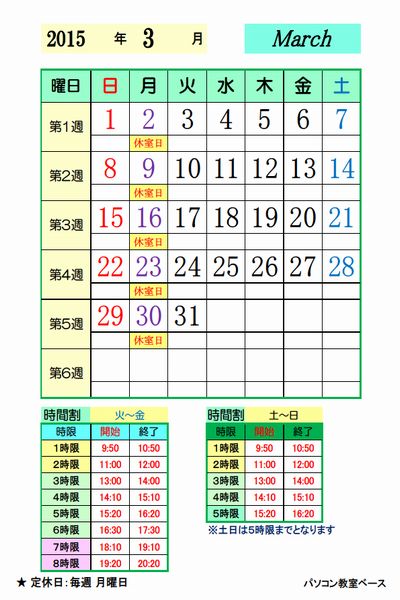 • 2015年3月分日程カレンダー