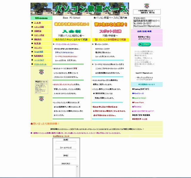 パソコン教室ベースのホームページ